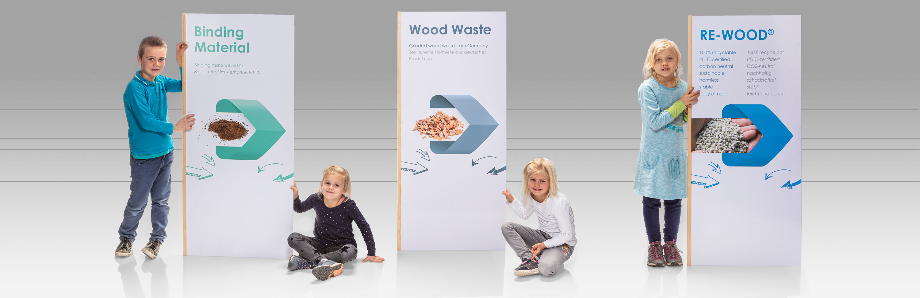 RE-Wood besteht zu 100% aus recycelten Materialien. Produkte aus RE-Wood sind stabil, leicht, speichelecht und sie besitzen eine hohe Gebrauchssicherheit.