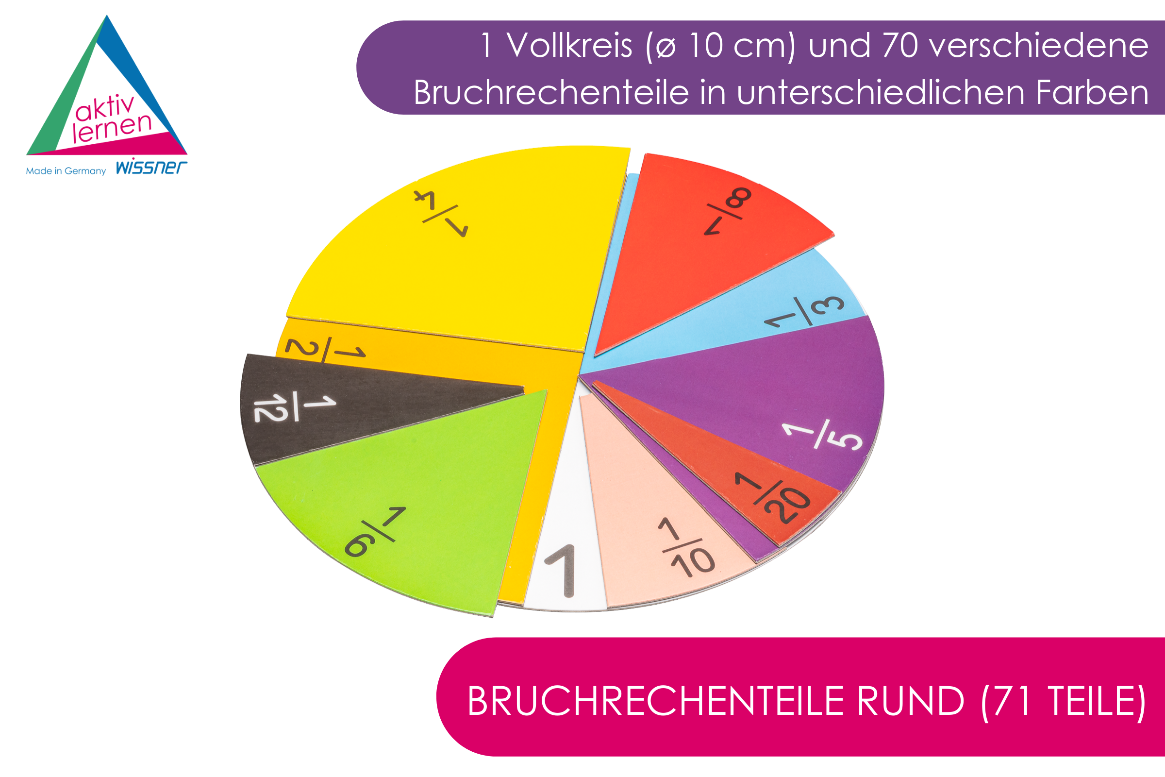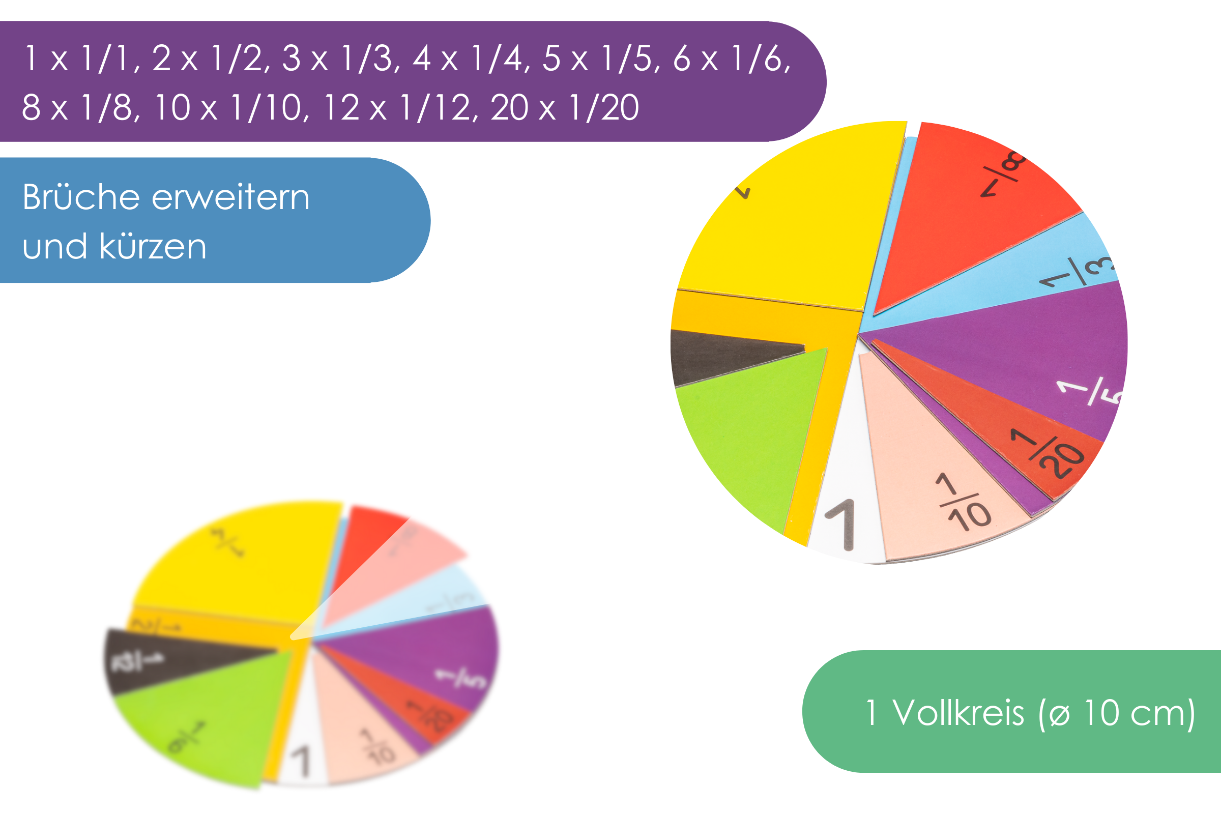 Jeder Bruchkreis hat dieselben Farben wie der Schülersatz 120122.000. ø 26cm, magnetisch, 71 Teile. Verpackt im Karton.