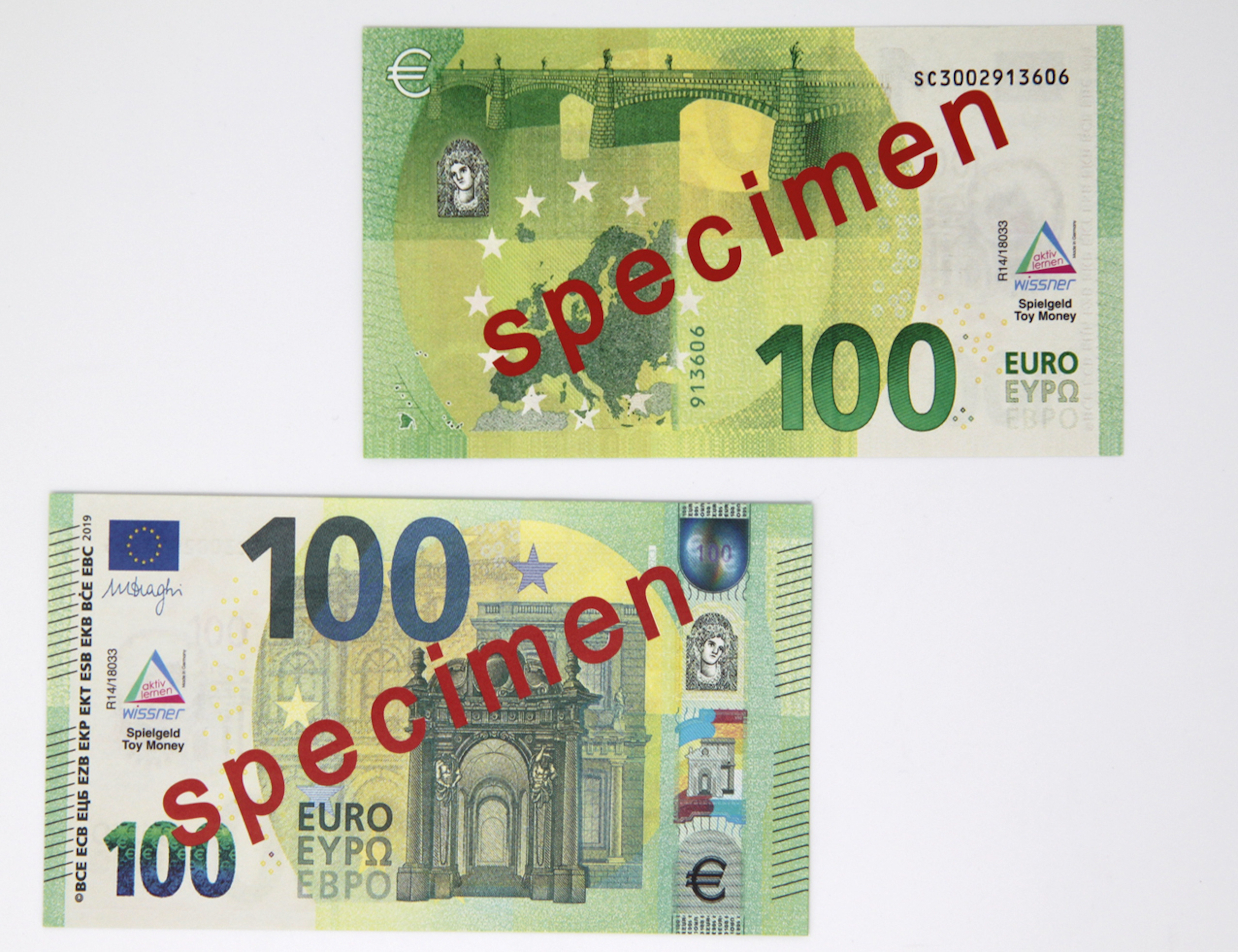 Unsere Geldscheine bestehen aus verstärktem Papier, sind beidseitig bedruckt und mit einem farbigen SPECIMEN Aufdruck versehen, damit diese leicht von echten Geldscheinen unterschieden werden können.