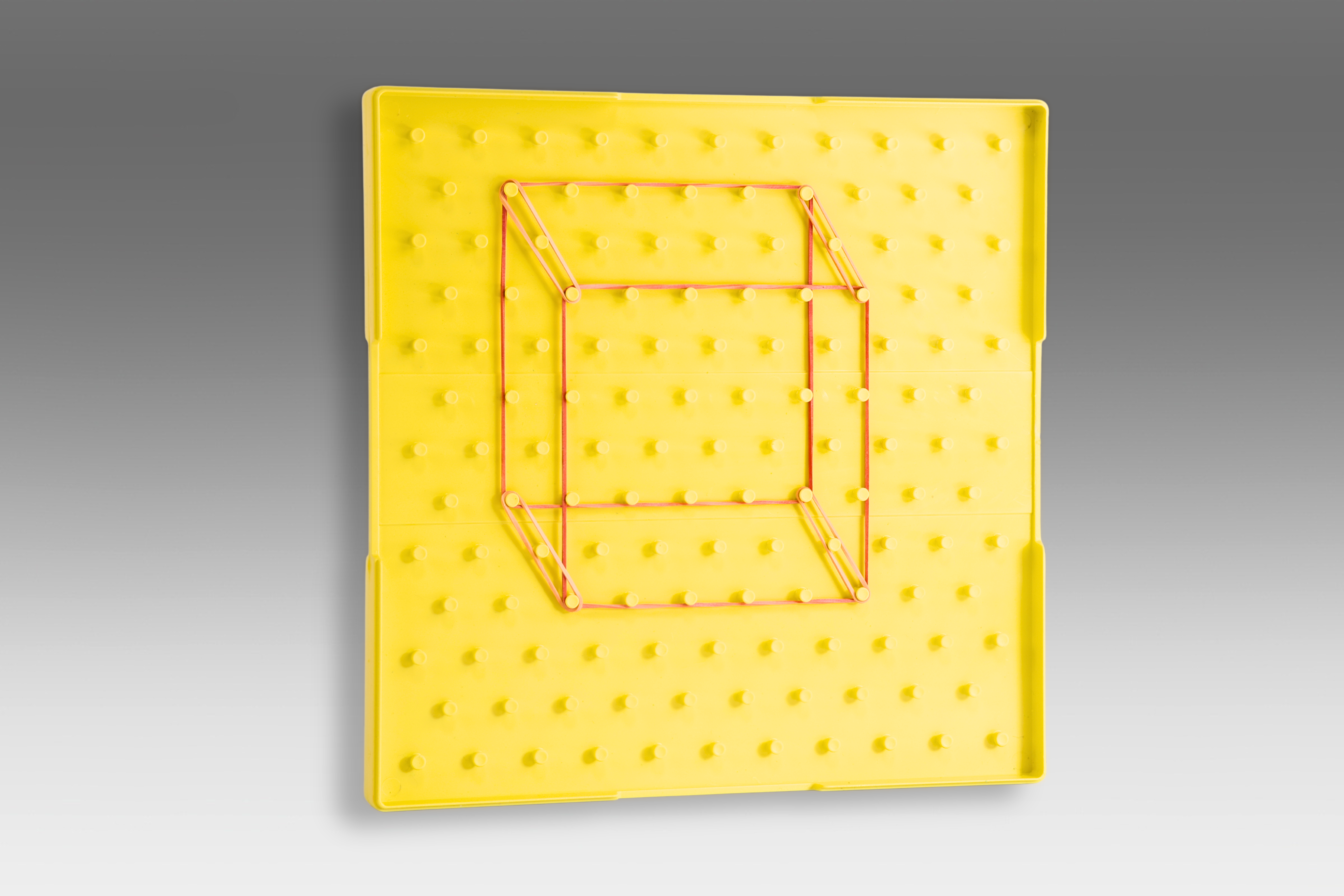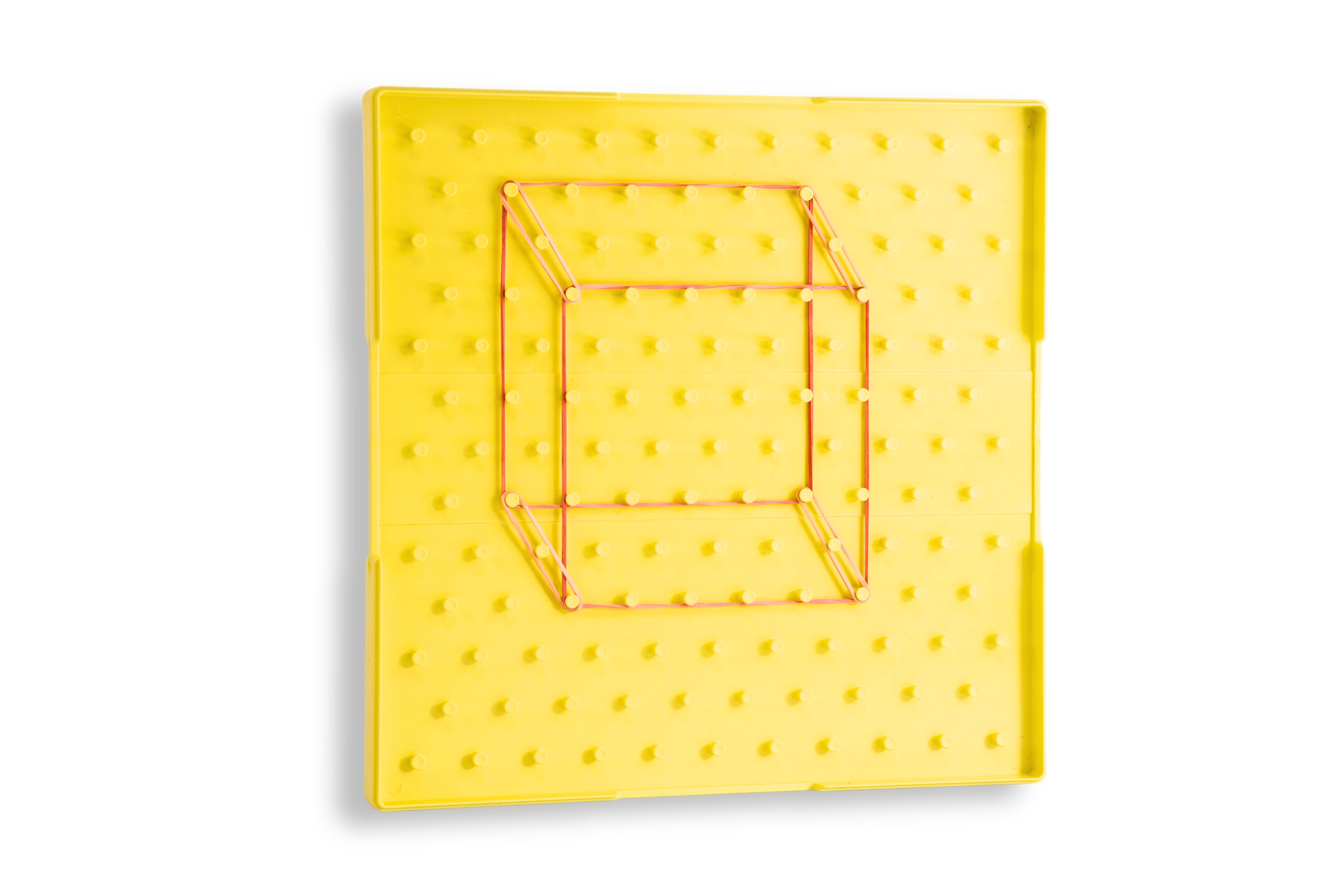 Durch die isometrische Anordnung der Zapfen auf der Rückseite sind auch dreidimensionale Darstellungen von Körpern möglich.