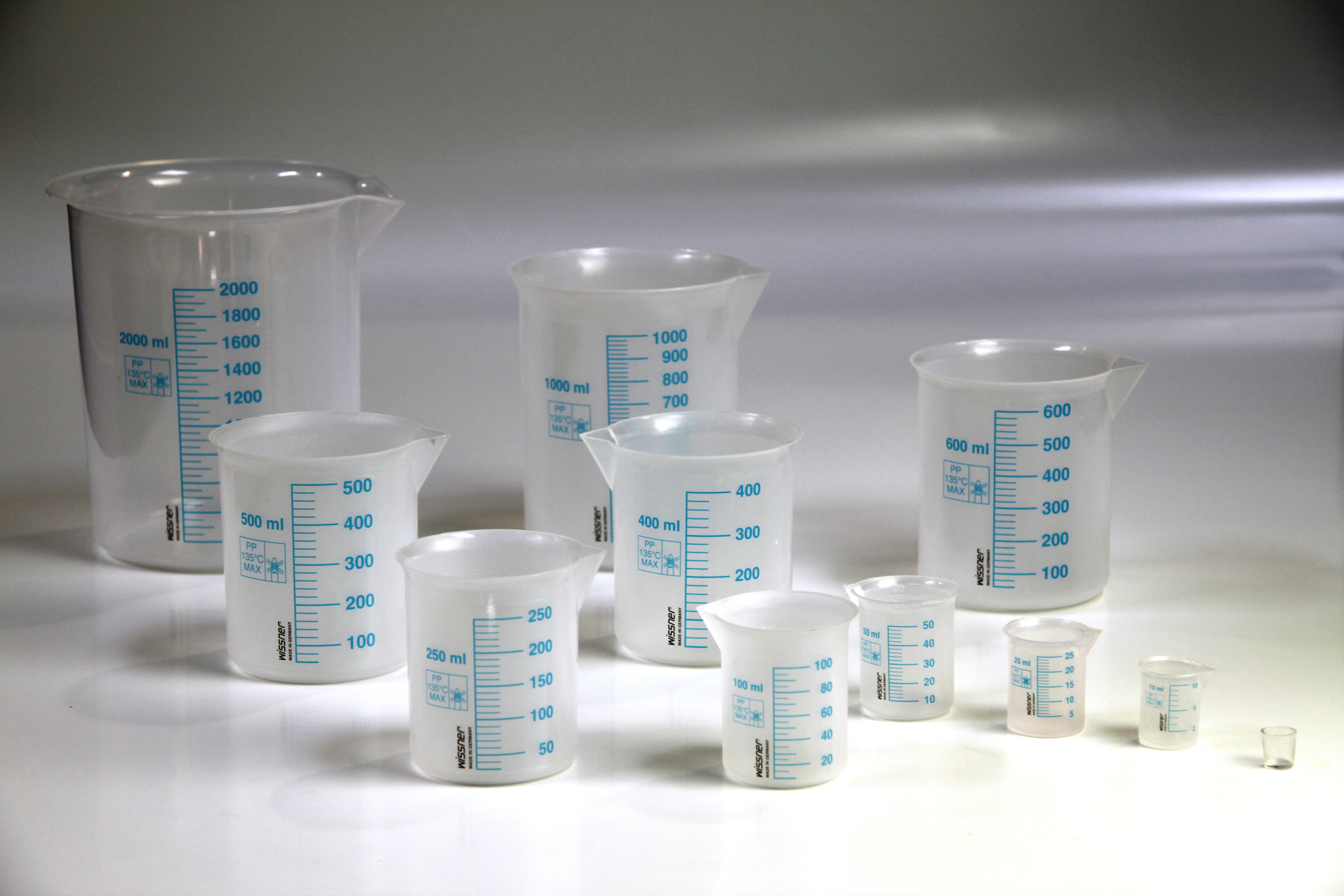 2000 ml, 1000 ml, 600 ml, 500 ml, 400 ml, 250 ml, 100 ml, 50 ml, 25 ml, 10 ml und 1 ml.