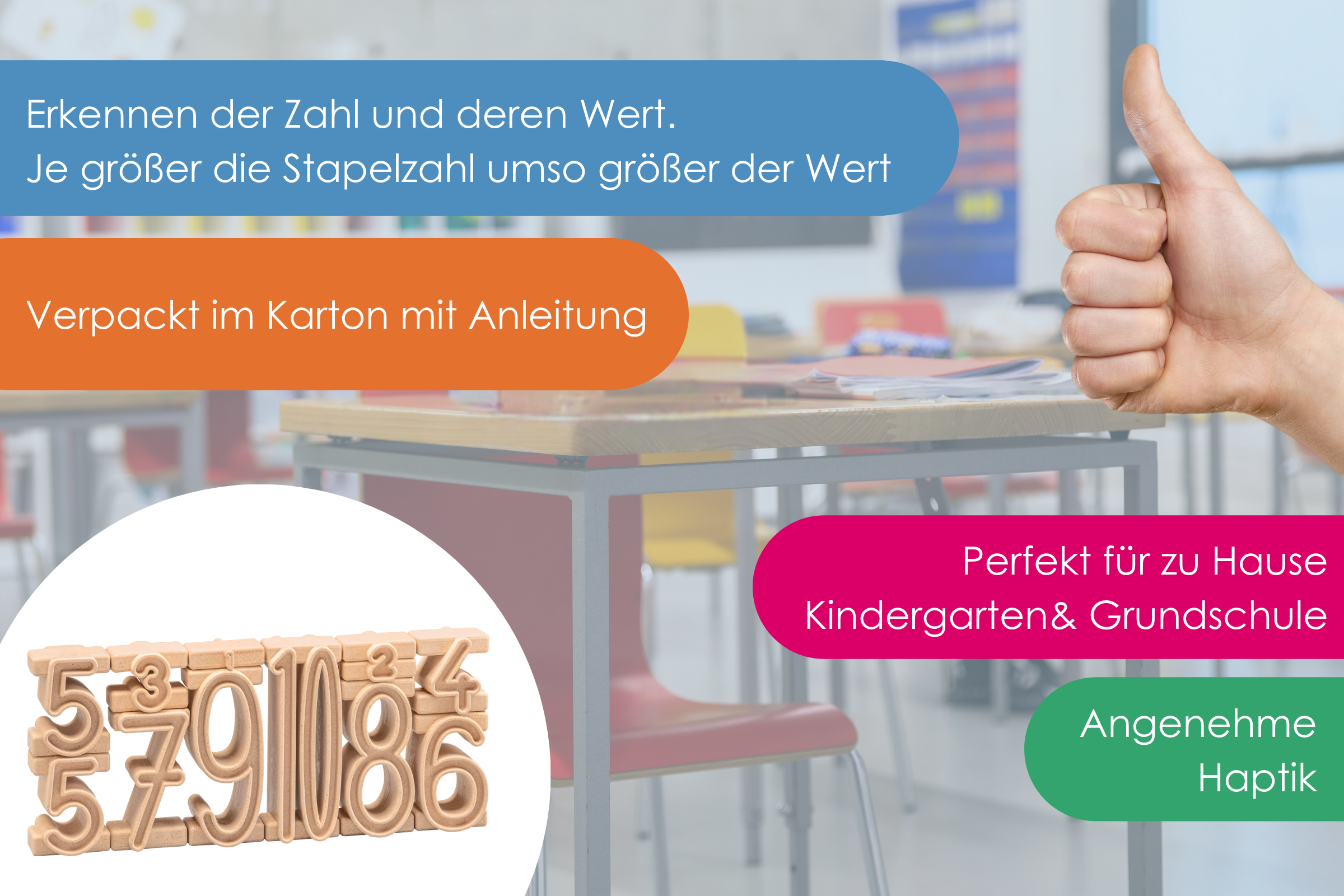 - Erkennen der Zahl und deren Wert. Je größer die Stapelzahl umso größer der Wert