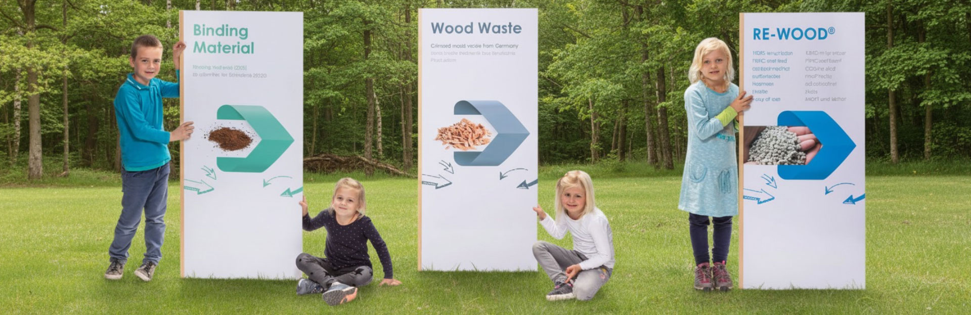 RE-Wood besteht zu 100% aus recycelten Materialien. Produkte aus RE-Wood sind stabil, leicht, speichelecht und sie besitzen eine hohe Gebrauchssicherheit.
