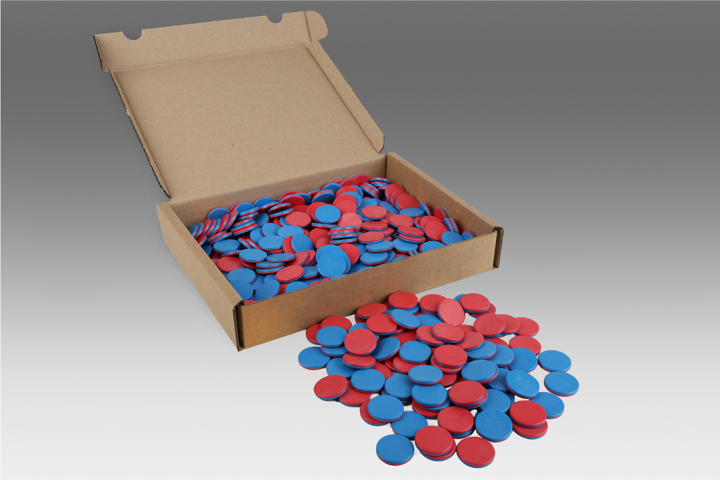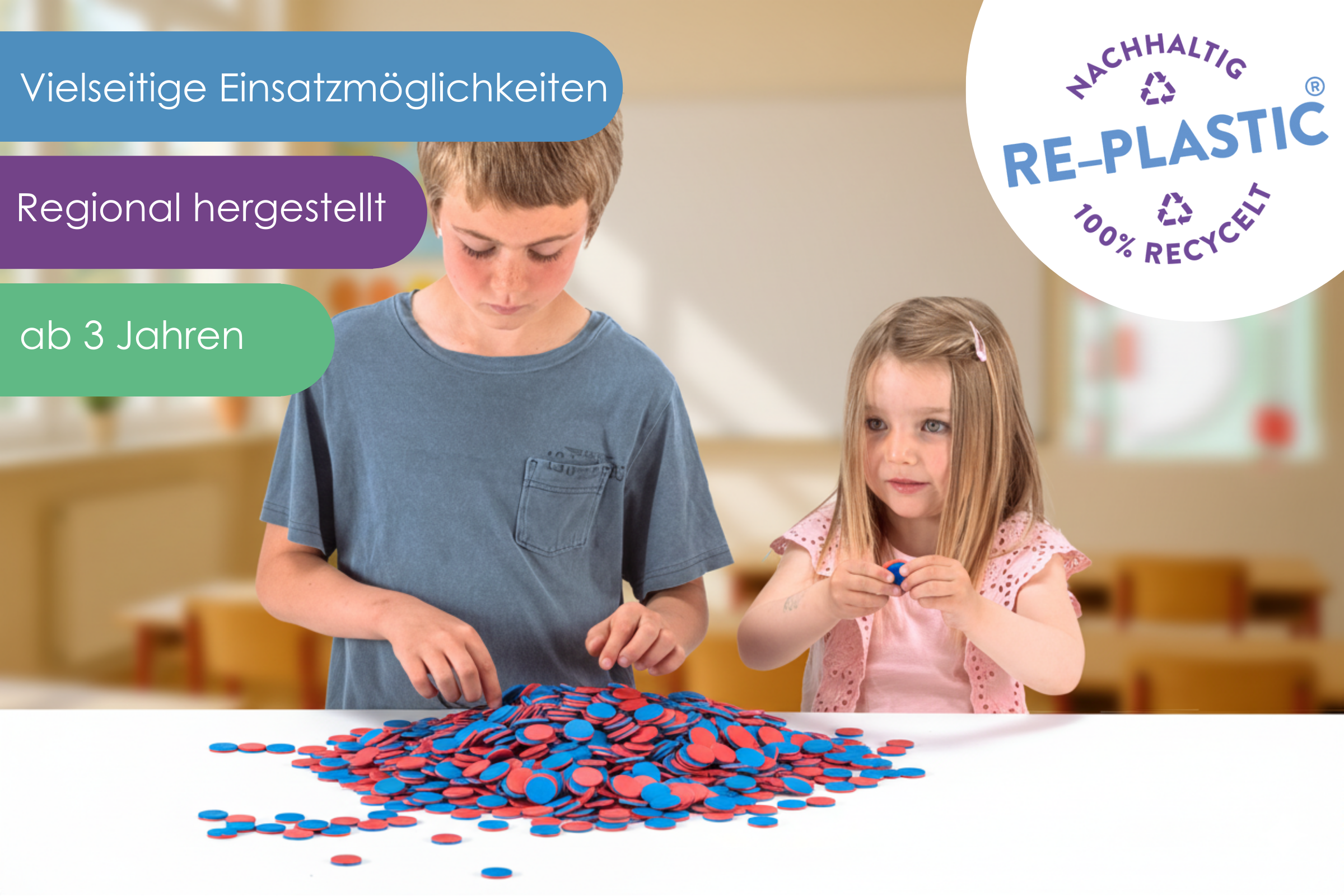 Mit einem Durchmesser von 2,5 cm und einer Stärke von 0,4 cm sind die Plättchen für Kinderhände gut greifbar.