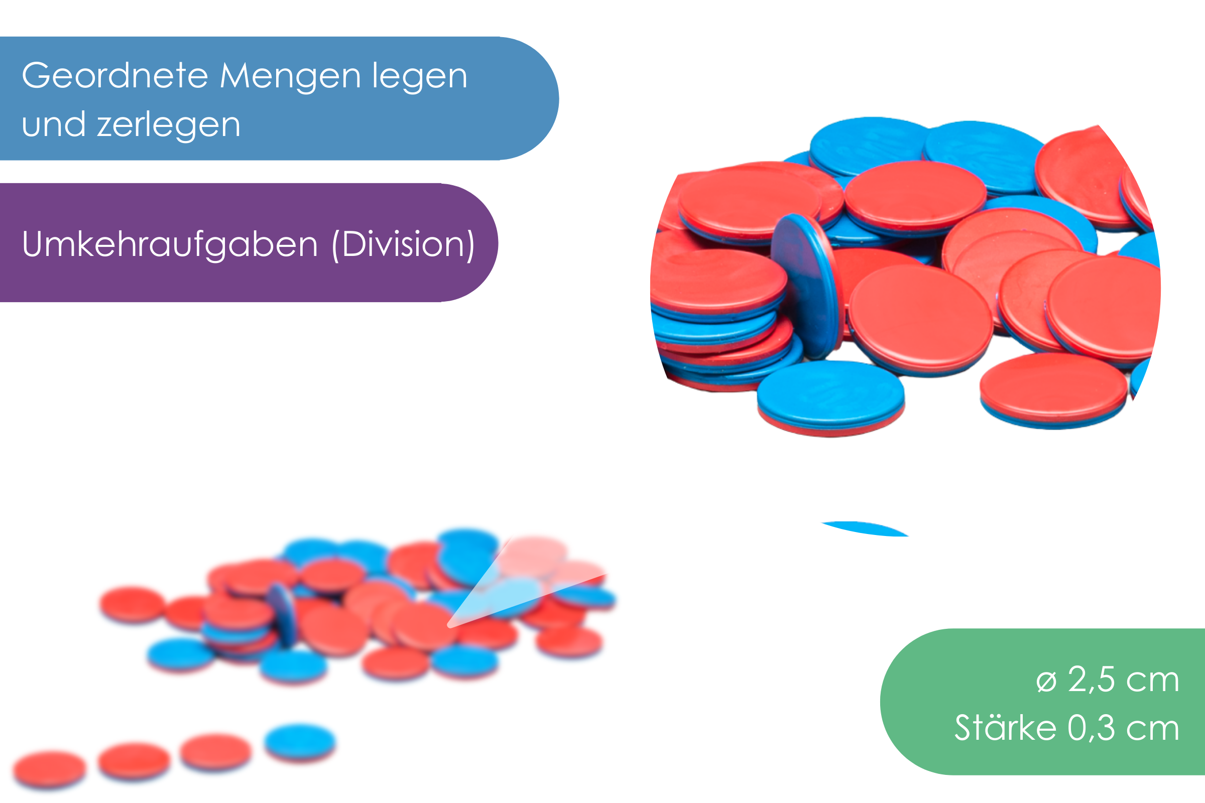 - Ungeordnete Menge an Plättchen schätzen und dann zählen (fundierter Zahlbegriff)
