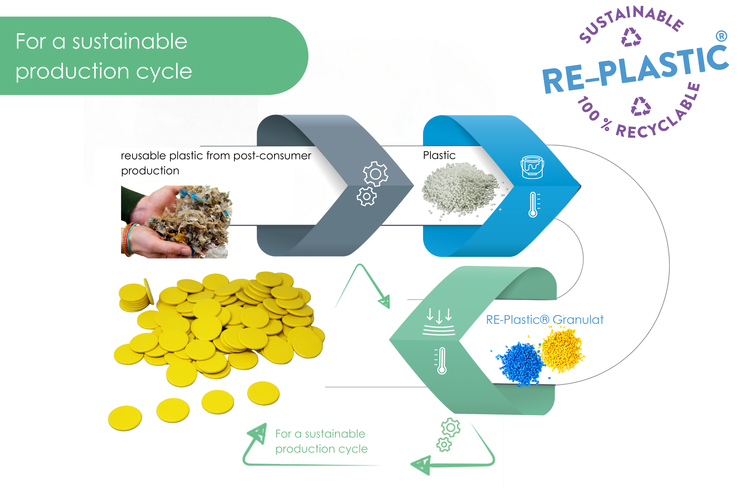 RE-Plastic is 100% post-consumer recycled plastic which is 100% recyclable again.