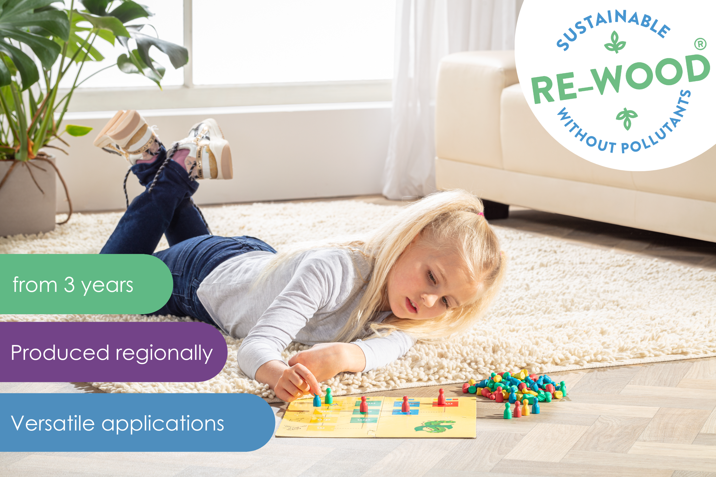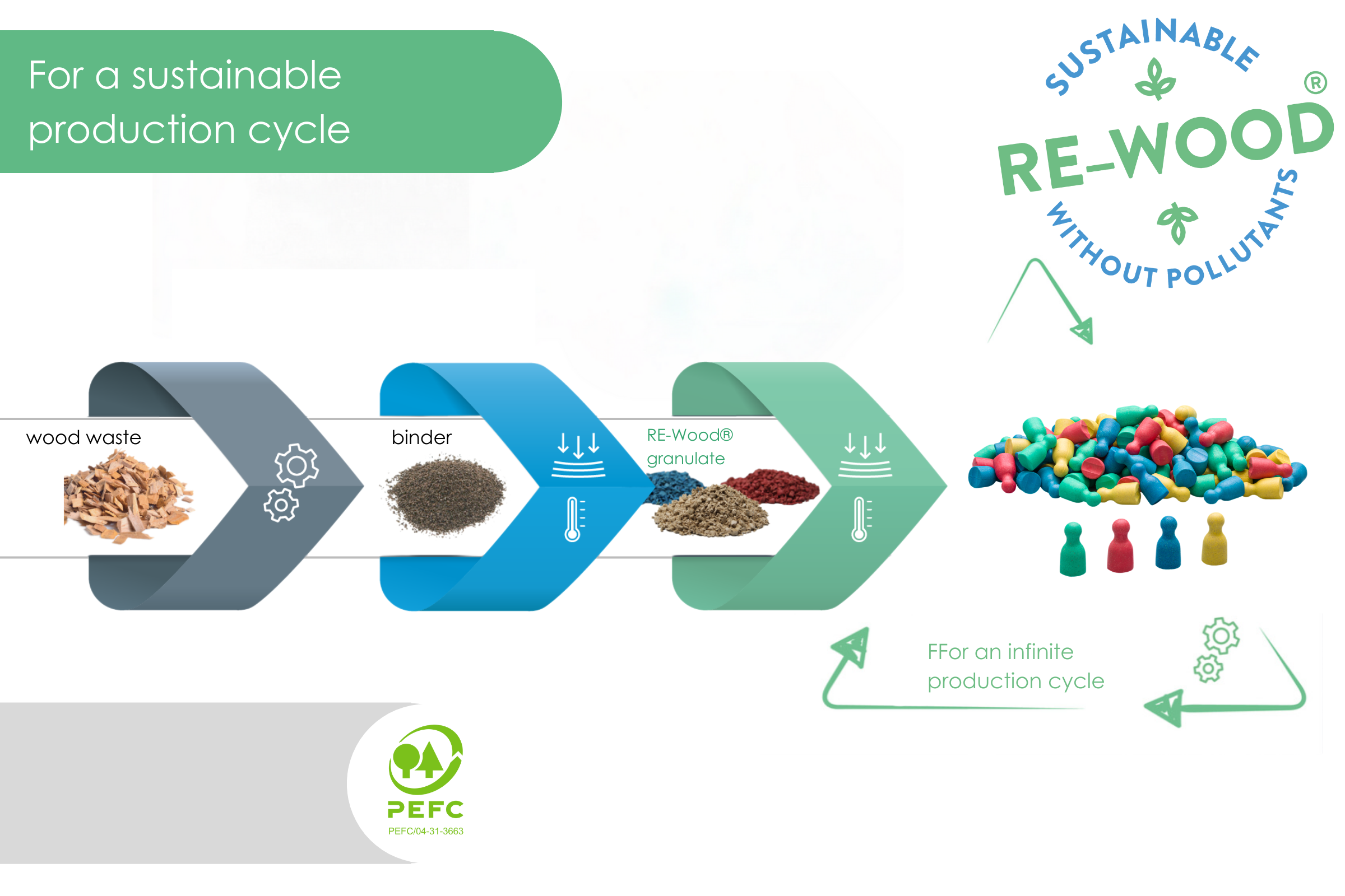 RE-Wood is made from 100% recycled materials (up to 80% from regional wood waste), PEFC certified and can be recycled again and again after use.