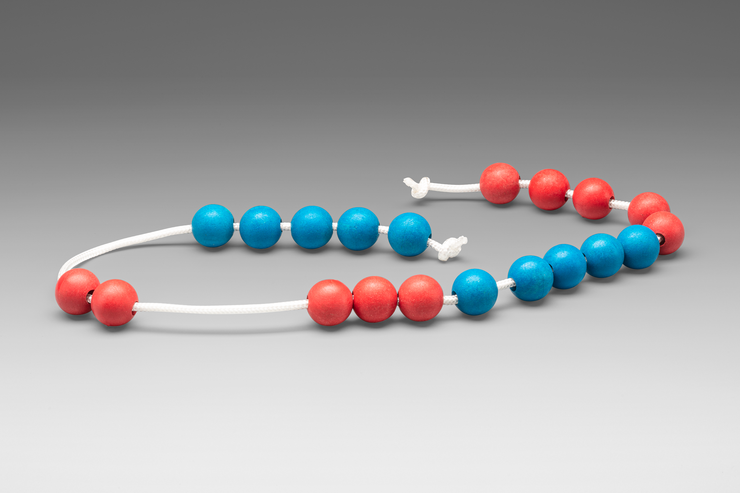 20 red/blue balls (Ø 2.5cm) from RE-Wood, in a step of 5 on a 100 cm long string.