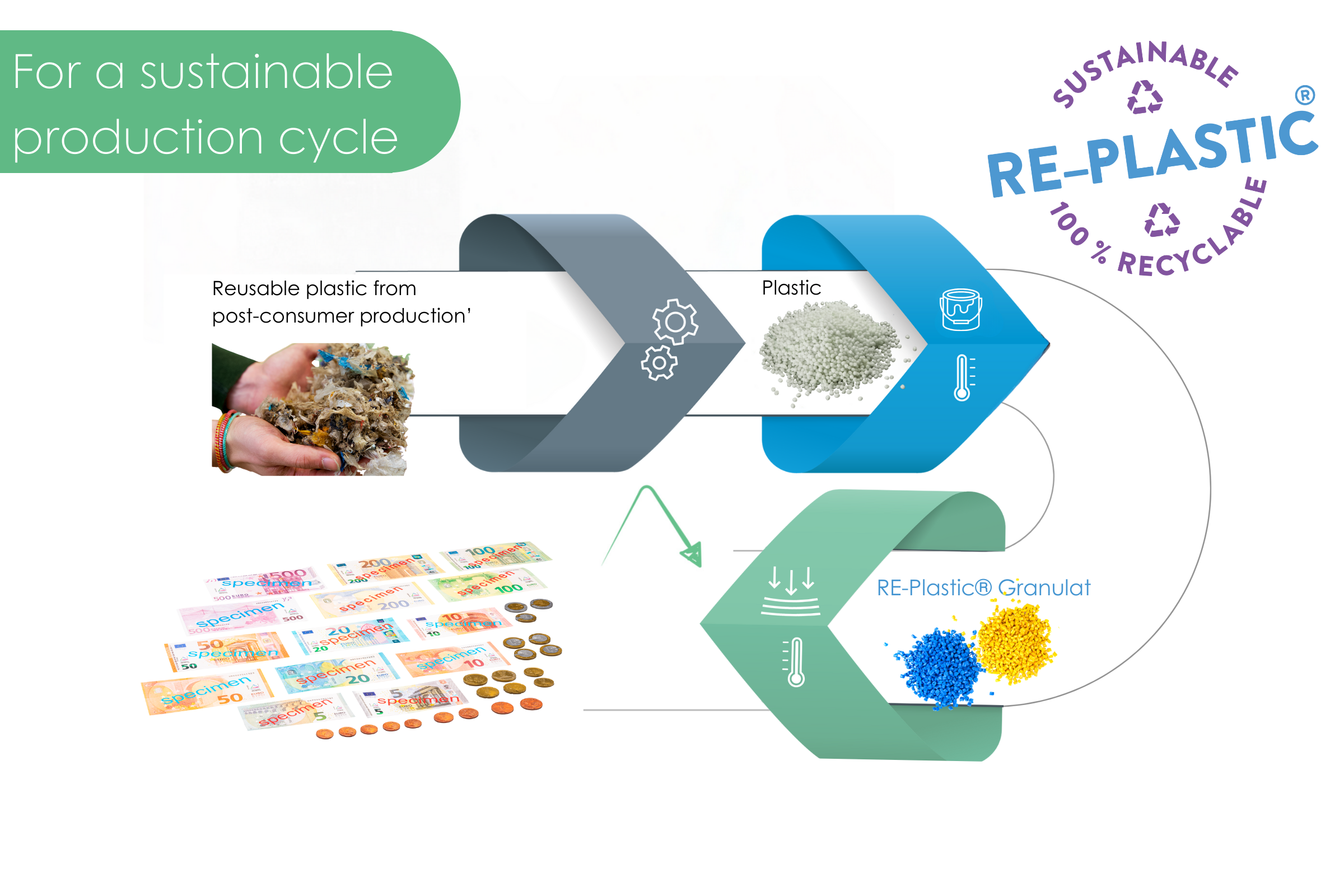 RE-Plastic is 100% post-consumer recycled plastic which is 100% recyclable again.