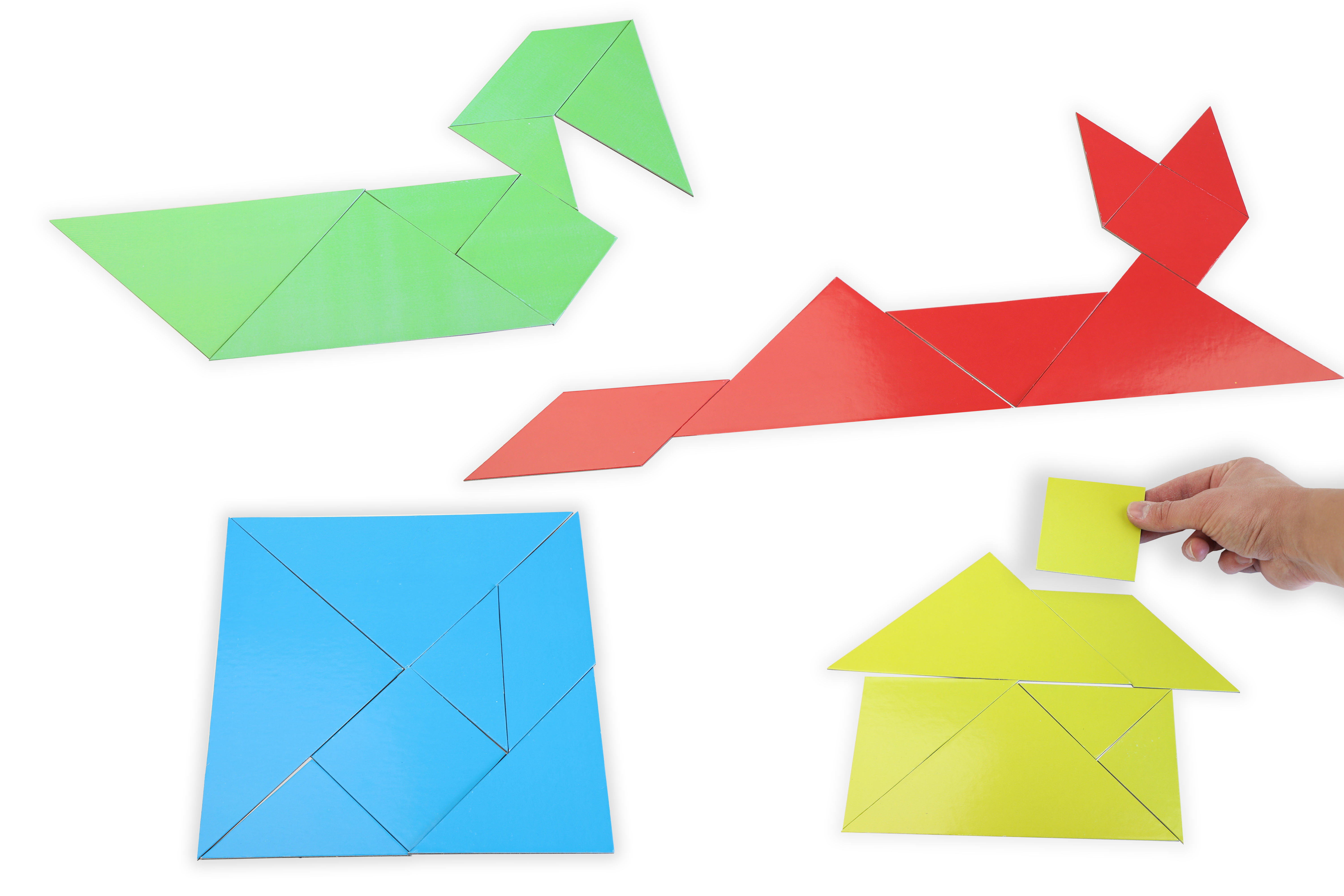 Tangram Set in 4 colours for chalkboard magnetic (28 pcs)