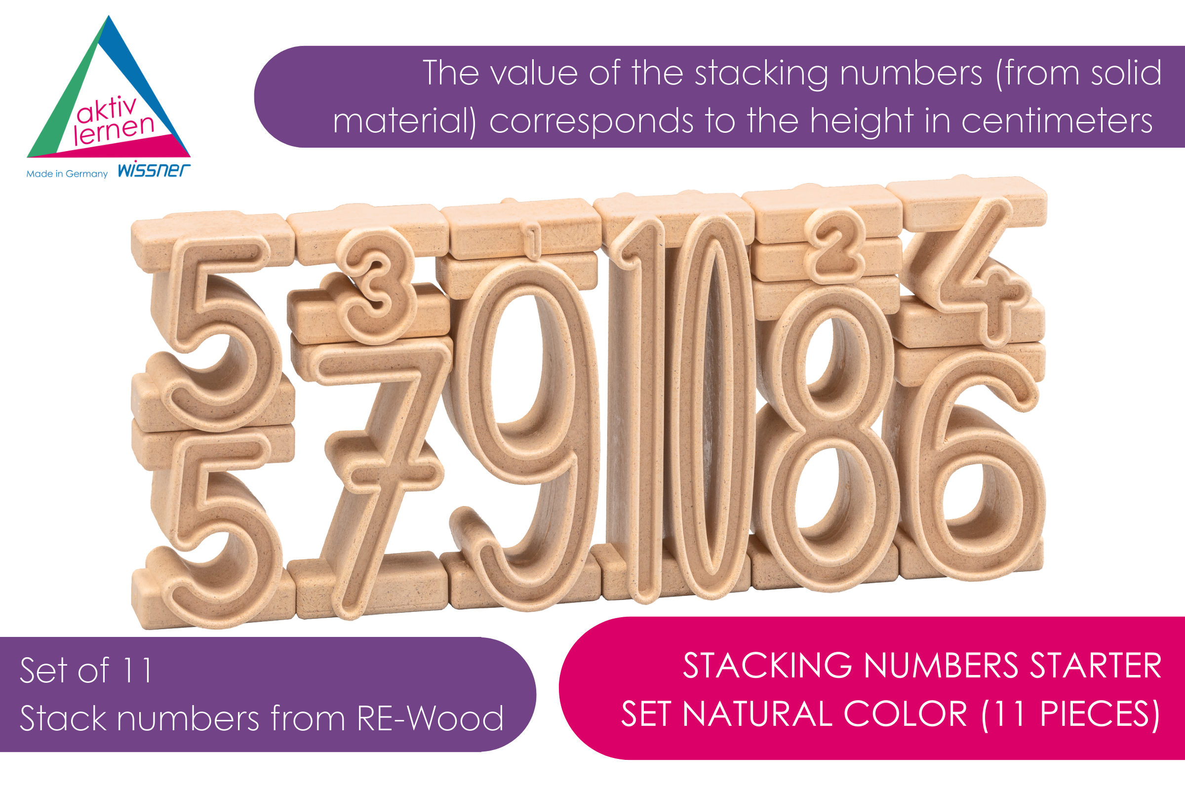The value of the stacking numbers (made from solid material) corresponds to the height in centimeters.