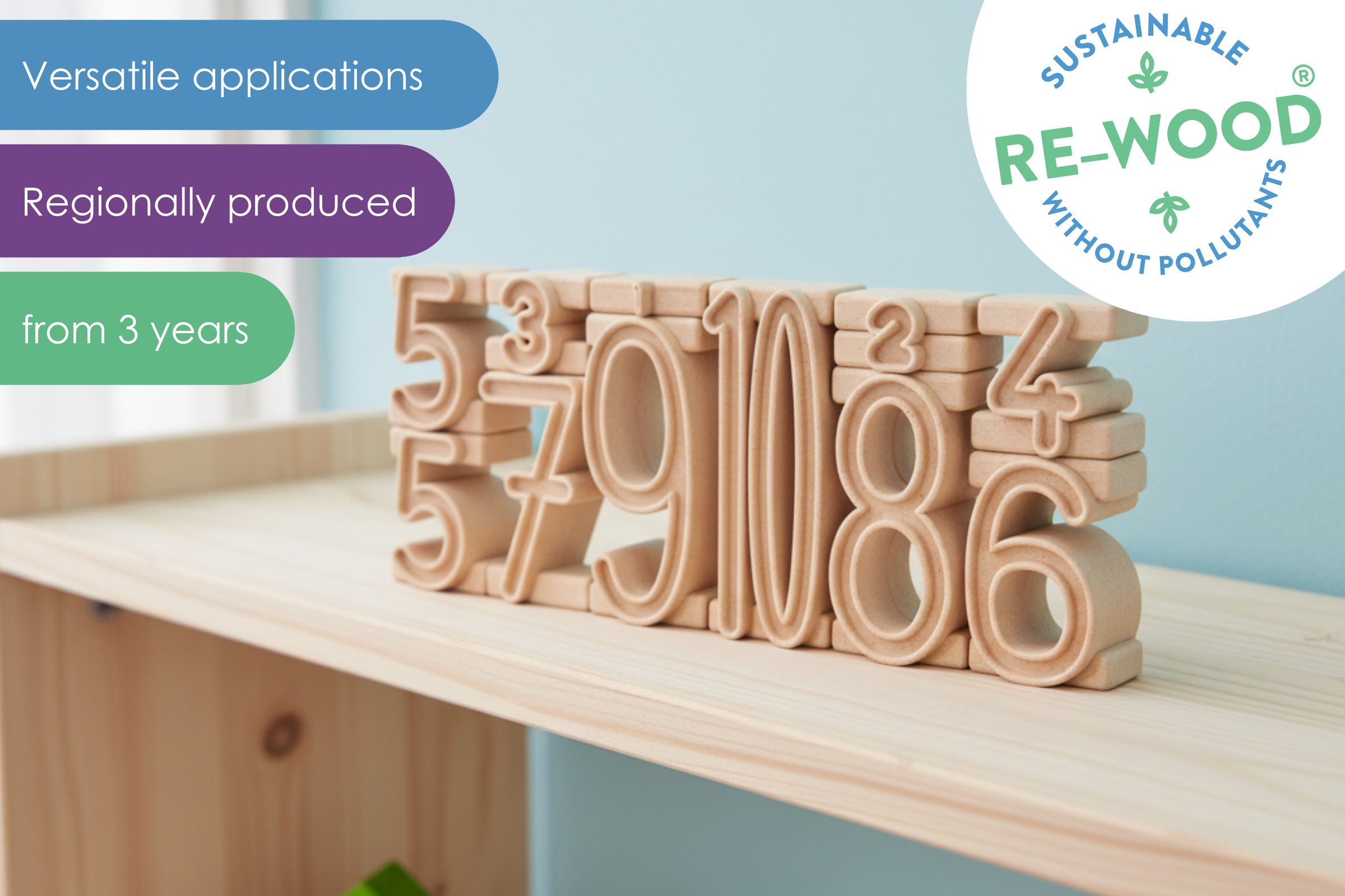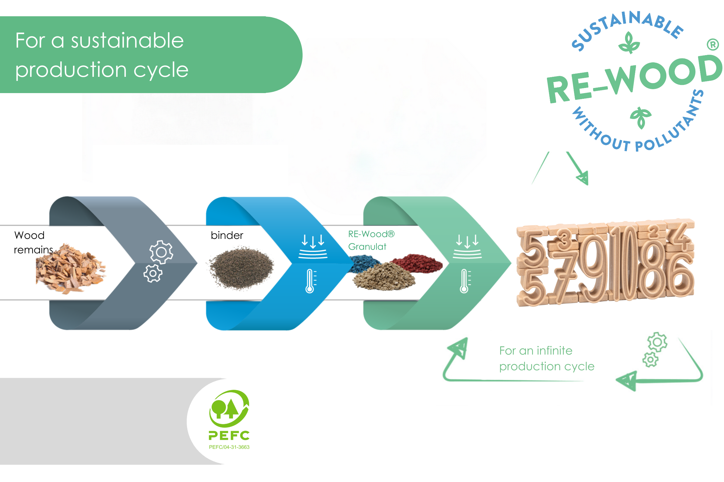 RE-Wood is made from 100% recycled materials (up to 80% from regional wood waste), PEFC certified and can be recycled again and again after use.