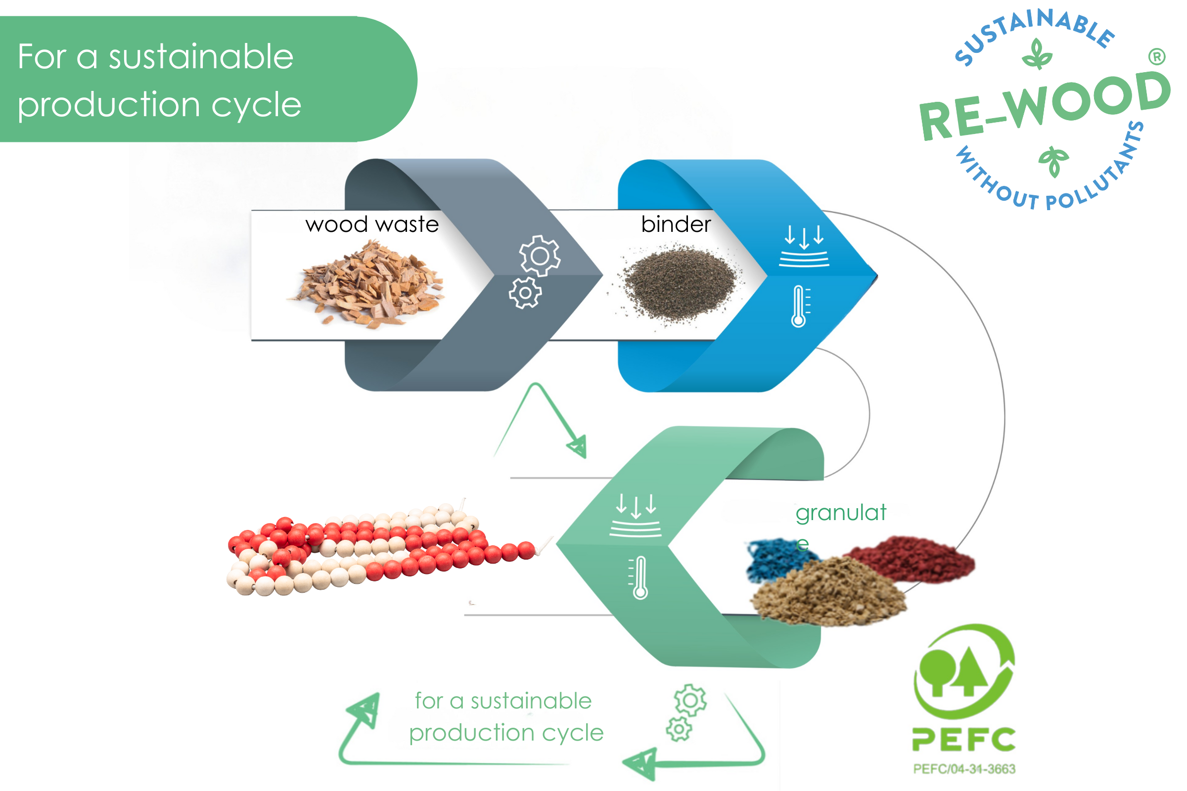RE-Wood is made from 100% recycled materials (up to 80% from regional wood waste), PEFC certified and can be recycled again and again after use.