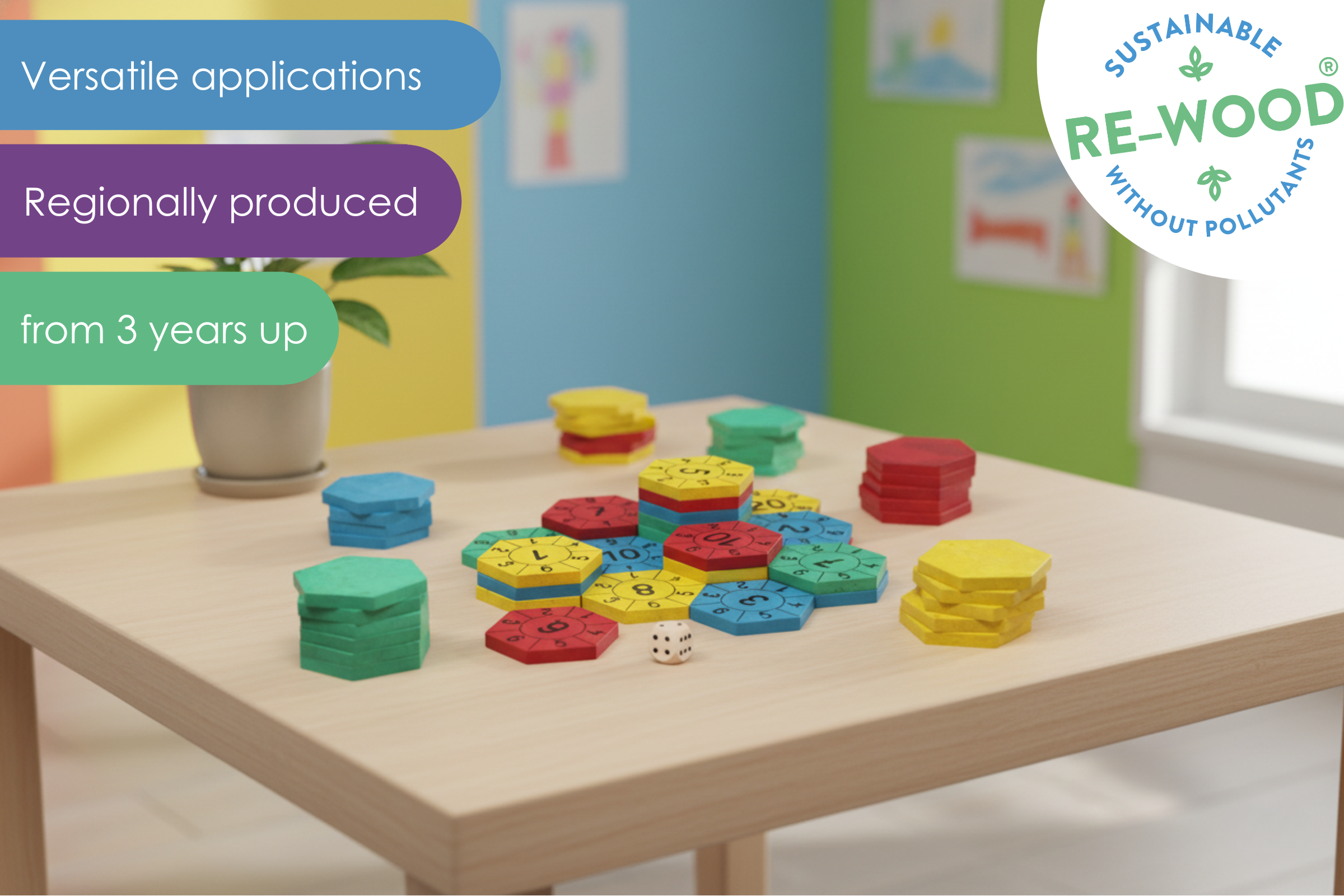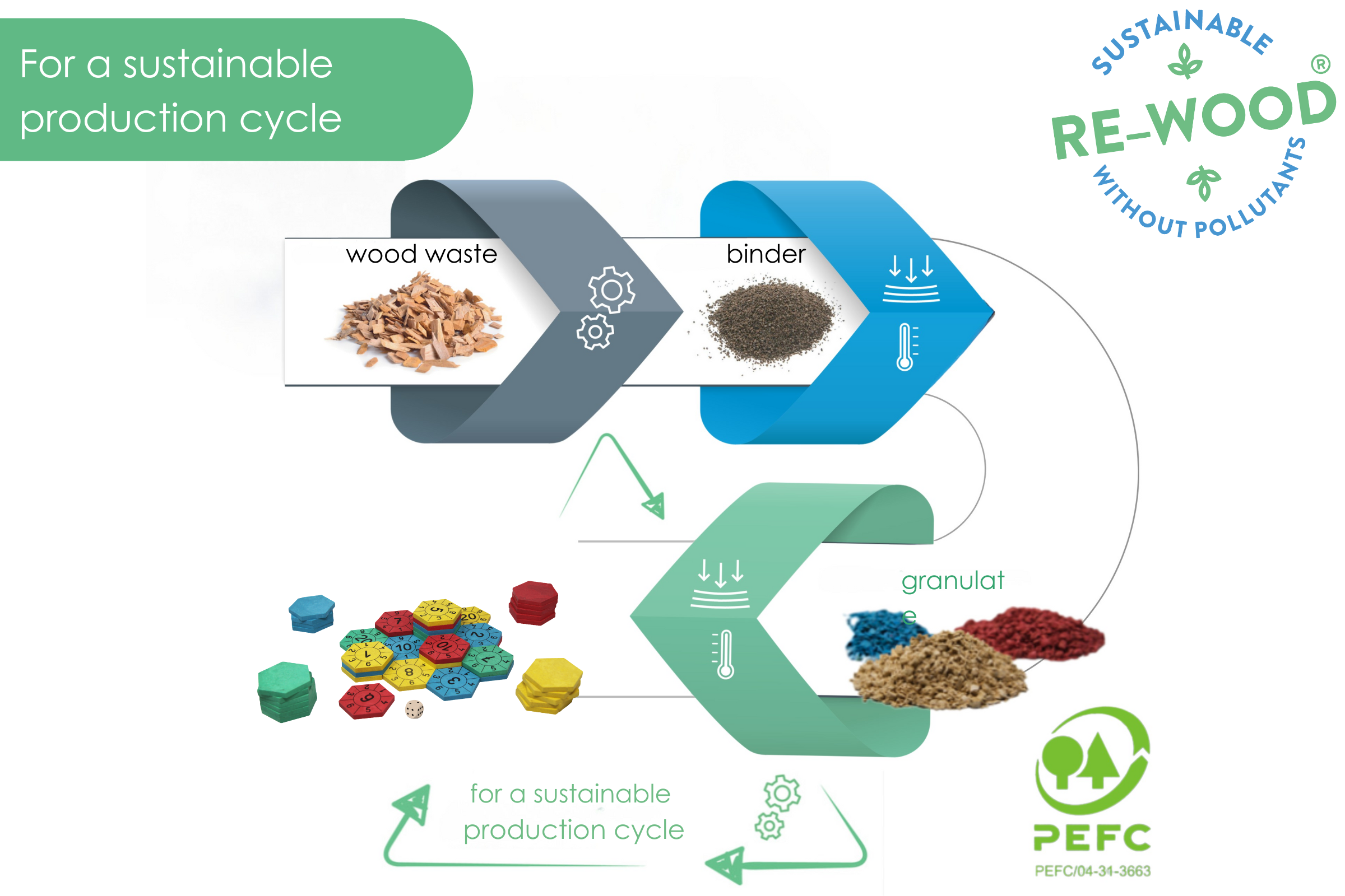 RE-Wood is made from 100% recycled materials (up to 80% from regional wood waste), PEFC certified and can be recycled again and again after use.