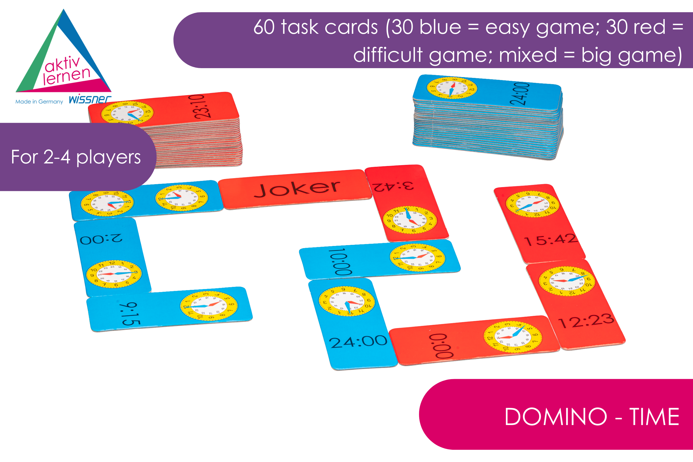 60 task cards (30 blue = easy game; 30 red = hard game; mixed = big game)