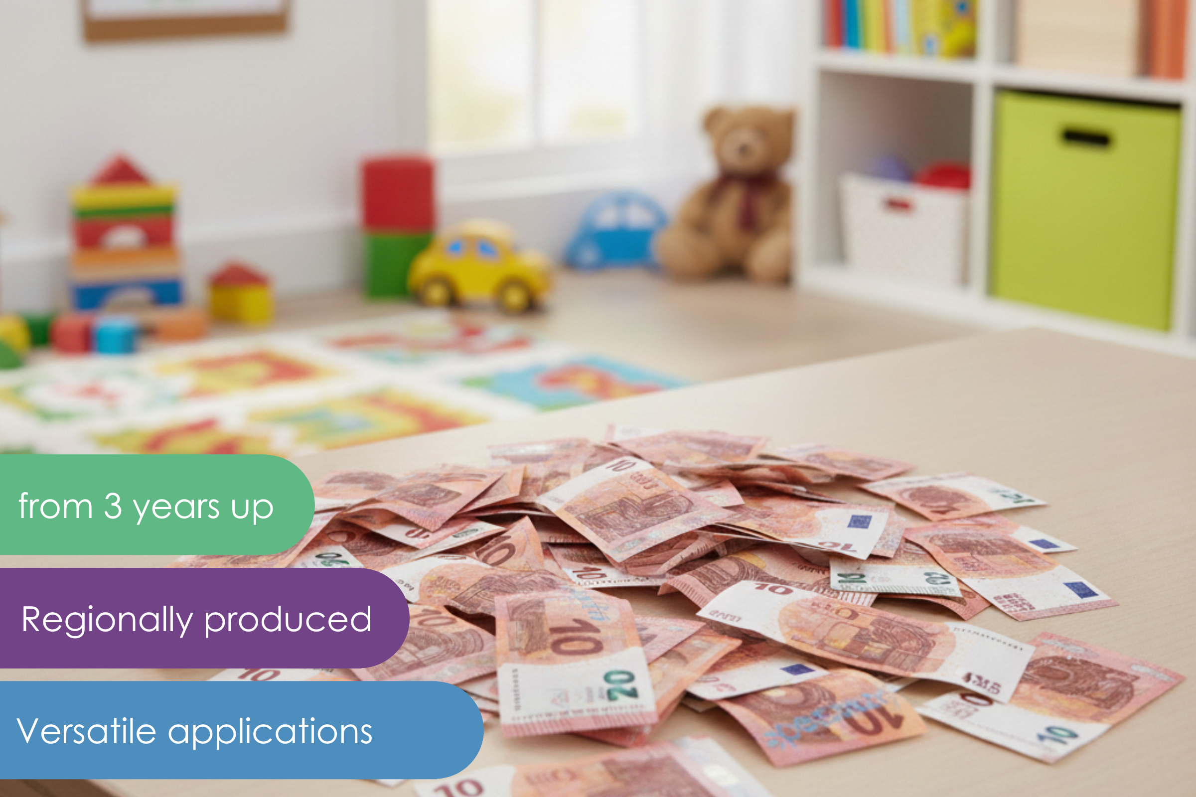 These coins are suitable as a supplement to our play money sets. Made of RE-Plastic in original size.