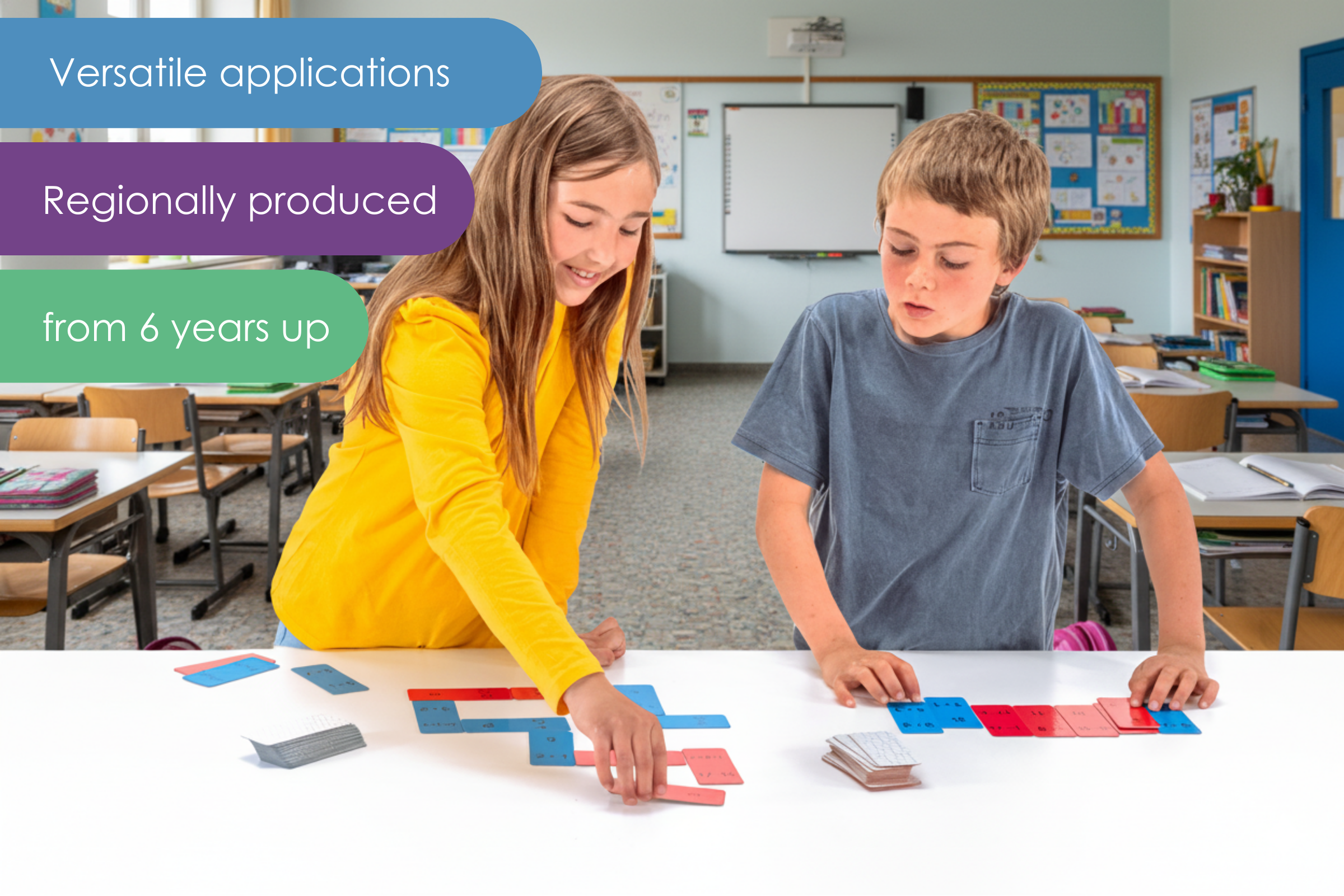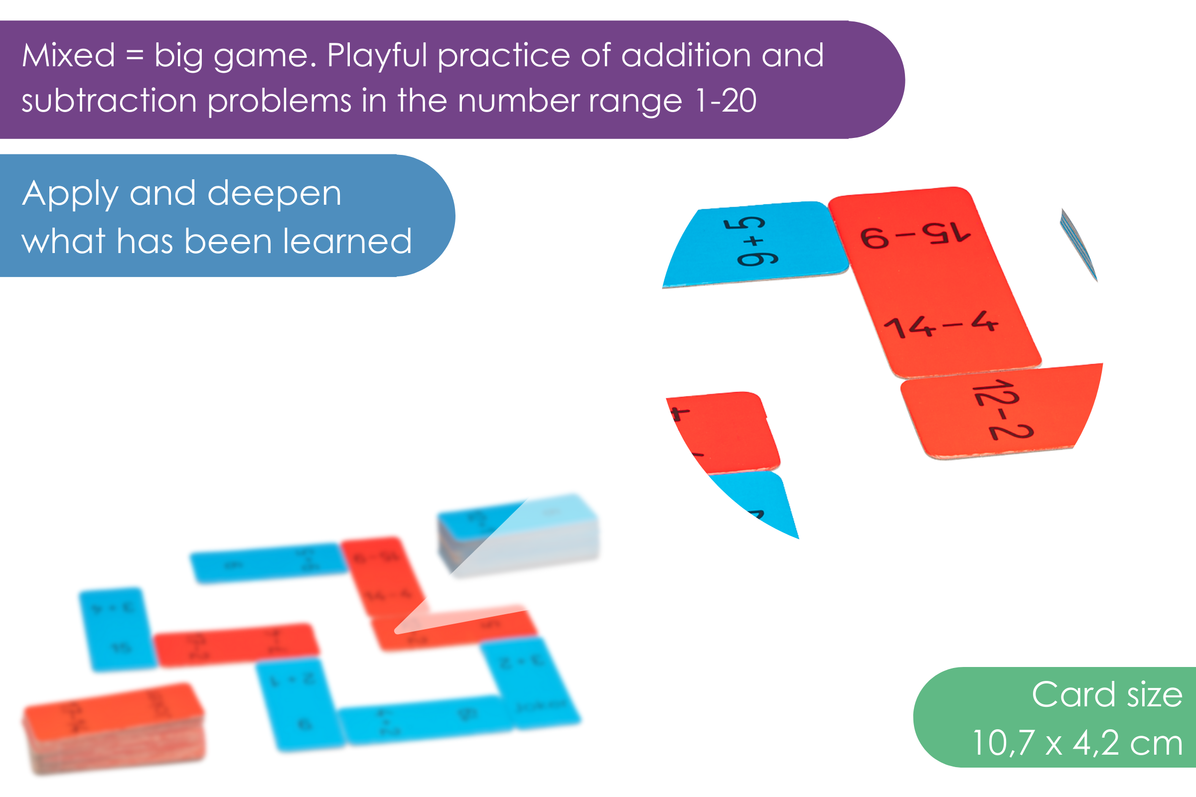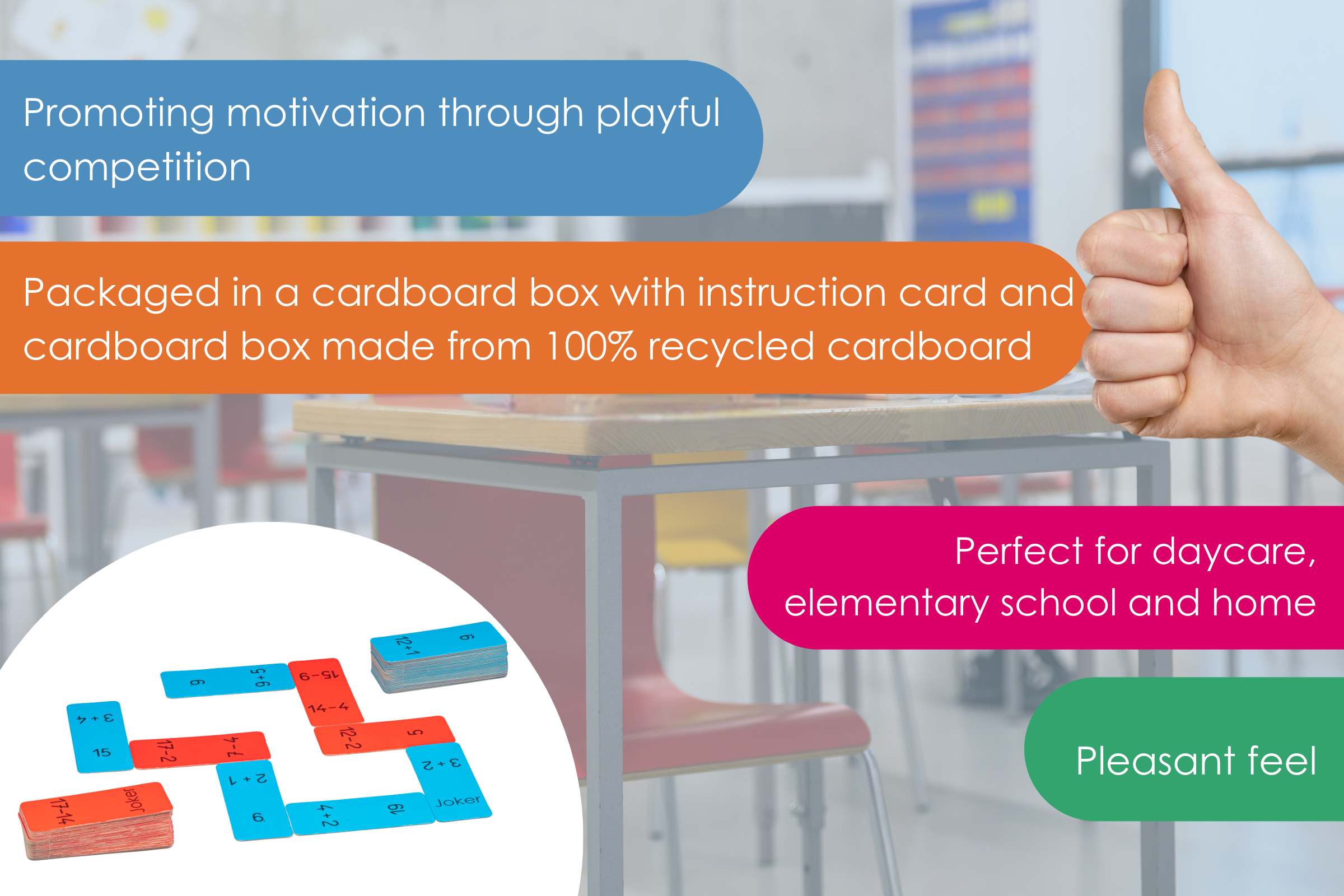 Size of a domino card (100% recycled cardboard): 10.7 x 4.2 cm.