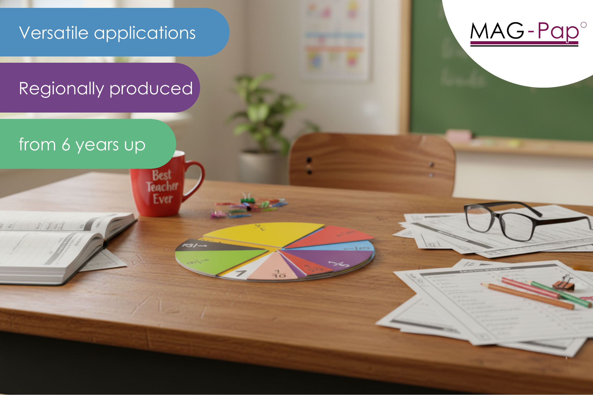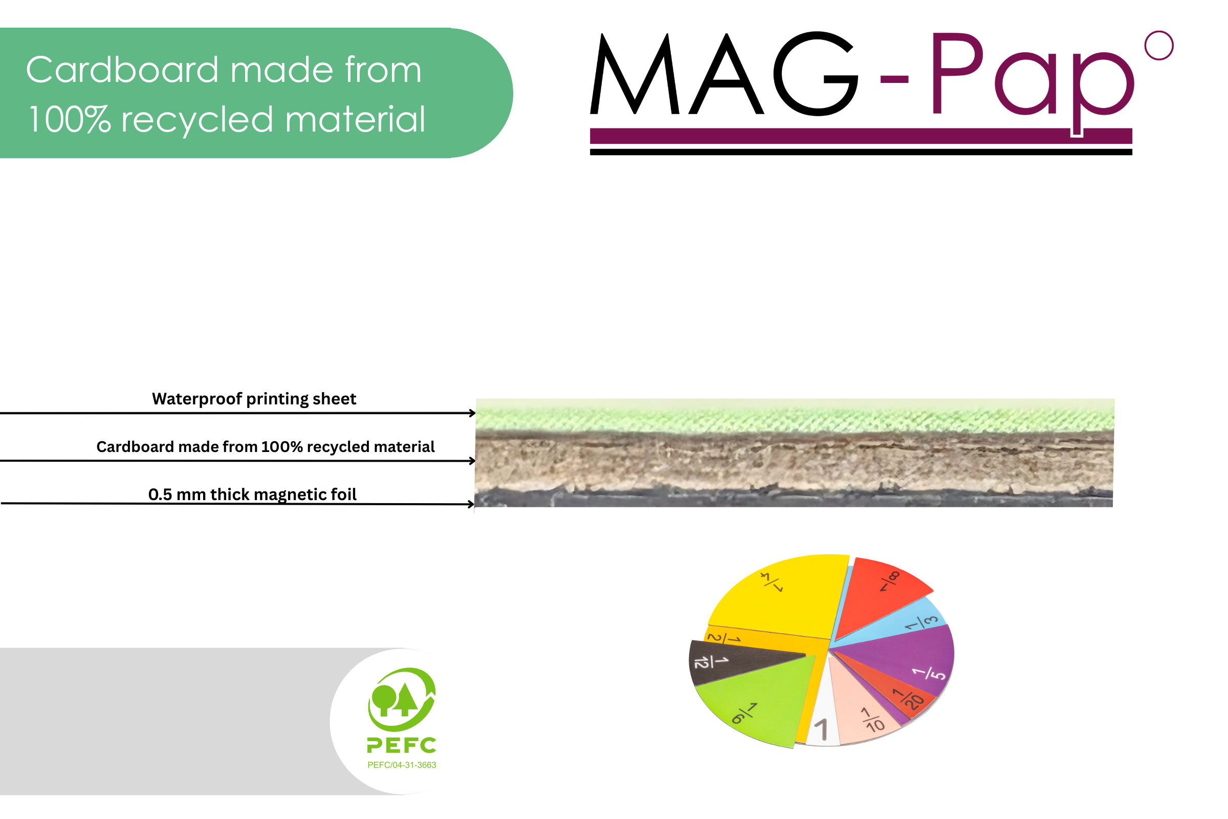 Magnetic foil meets recycled cardboard, surface laminated for long-lasting use - ideal for blackboards, whiteboards & co.