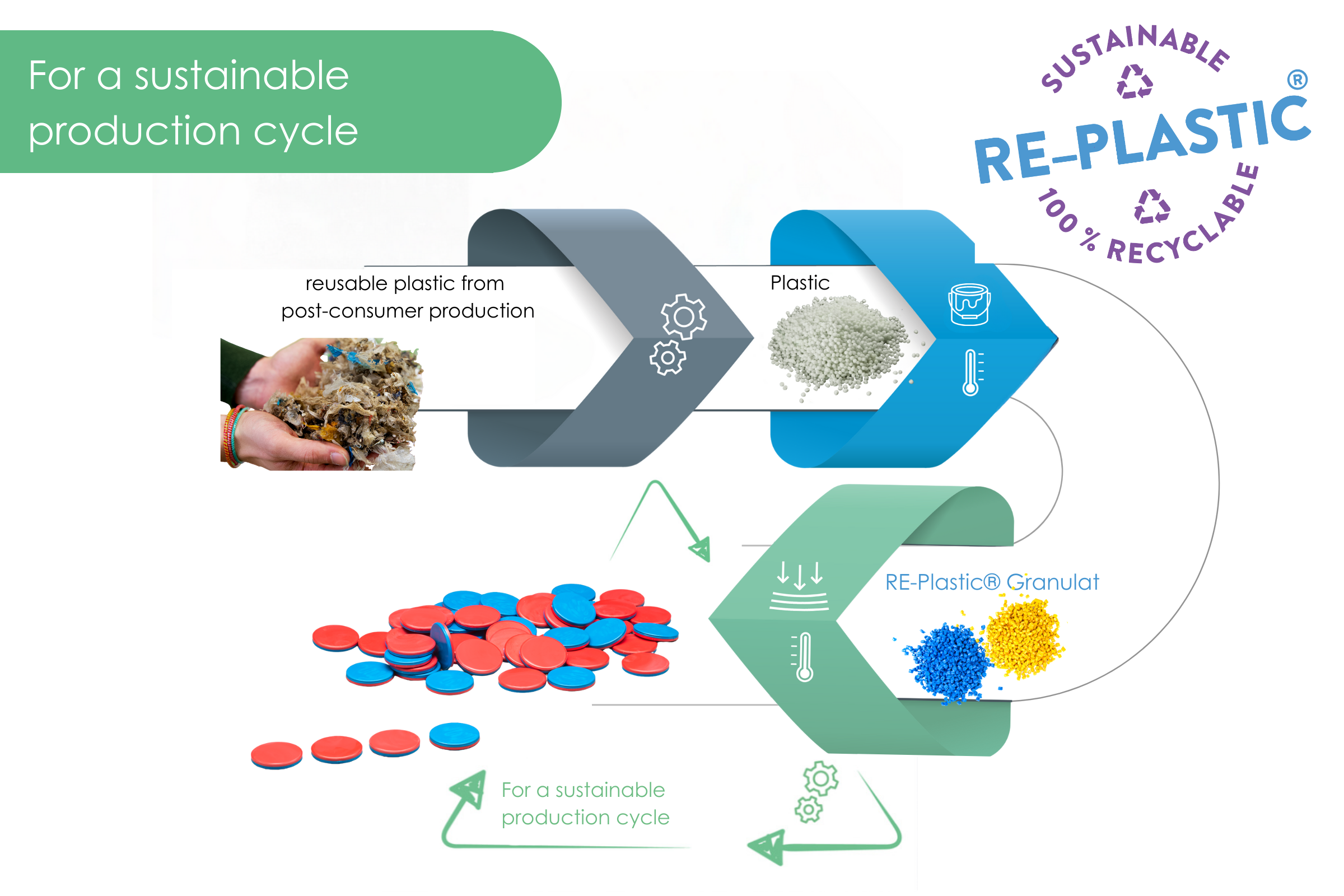 RE-Plastic is 100% post-consumer recycled plastic which is 100% recyclable again.