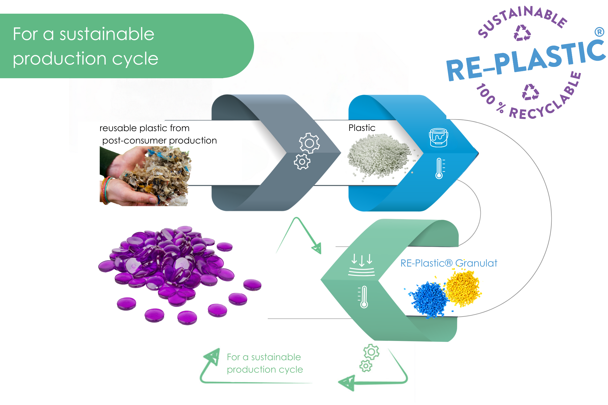RE-Plastic is 100% post-consumer recycled plastic which is 100% recyclable again.
