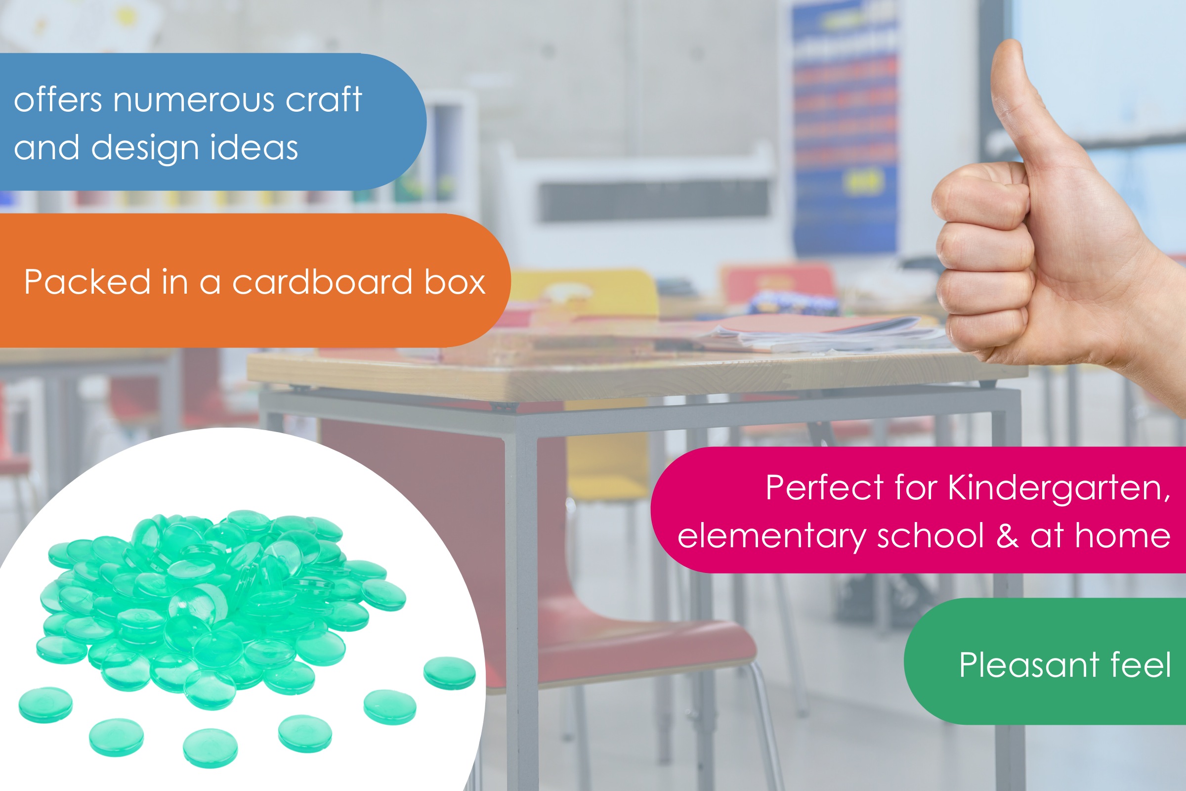Tolle Qualität – nicht nur zum Rechnen, auch perfekt für Deko! Ich habe die transparenten Muggelsteine ursprünglich nicht für den Unterricht oder zum Rechnen gekauft, sondern als Dekoidee verwendet – und bin sehr zufrieden! Dazu habe ich ein schönes Glasgefäß mit feinem weißen Sand, einer kleinen Lichterkette bzw. Lampe und eben diesen Muggelsteinen kombiniert. Das Ganze ergibt ein richtig stimmungsvolles Lichtspiel, vor allem durch die gewölbte Oberfläche der Steine. Auf Pinterest findet man übrigens tolle Anleitungen für solche Deko-Projekte – absolute Empfehlung! Die Qualität der Steine ist top: klar, stabil, gleichmäßig geformt – und vor allem aus belegtem (recyceltem) Kunststoff hergestellt, was ich persönlich super finde. Nachhaltigkeit spielt für mich eine große Rolle, gerade bei Bastel- und Dekomaterialien. Ich kann die Muggelsteine also nicht nur fürs Zählen und Sortieren empfehlen, sondern auch für kreative Dekoideen im Wohn- oder Kinderzimmer. Ich werde mir vermutlich gleich noch ein zweites Set holen!