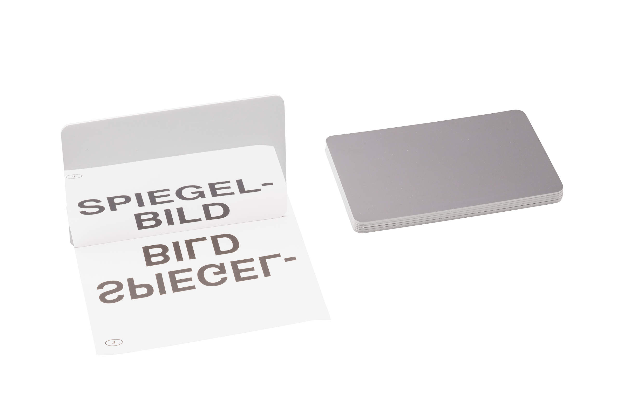 10 mirrors (appox. 15 x 10 cm) from 0.15 cm strong plastic, mirrored on one side, with rounded corners.